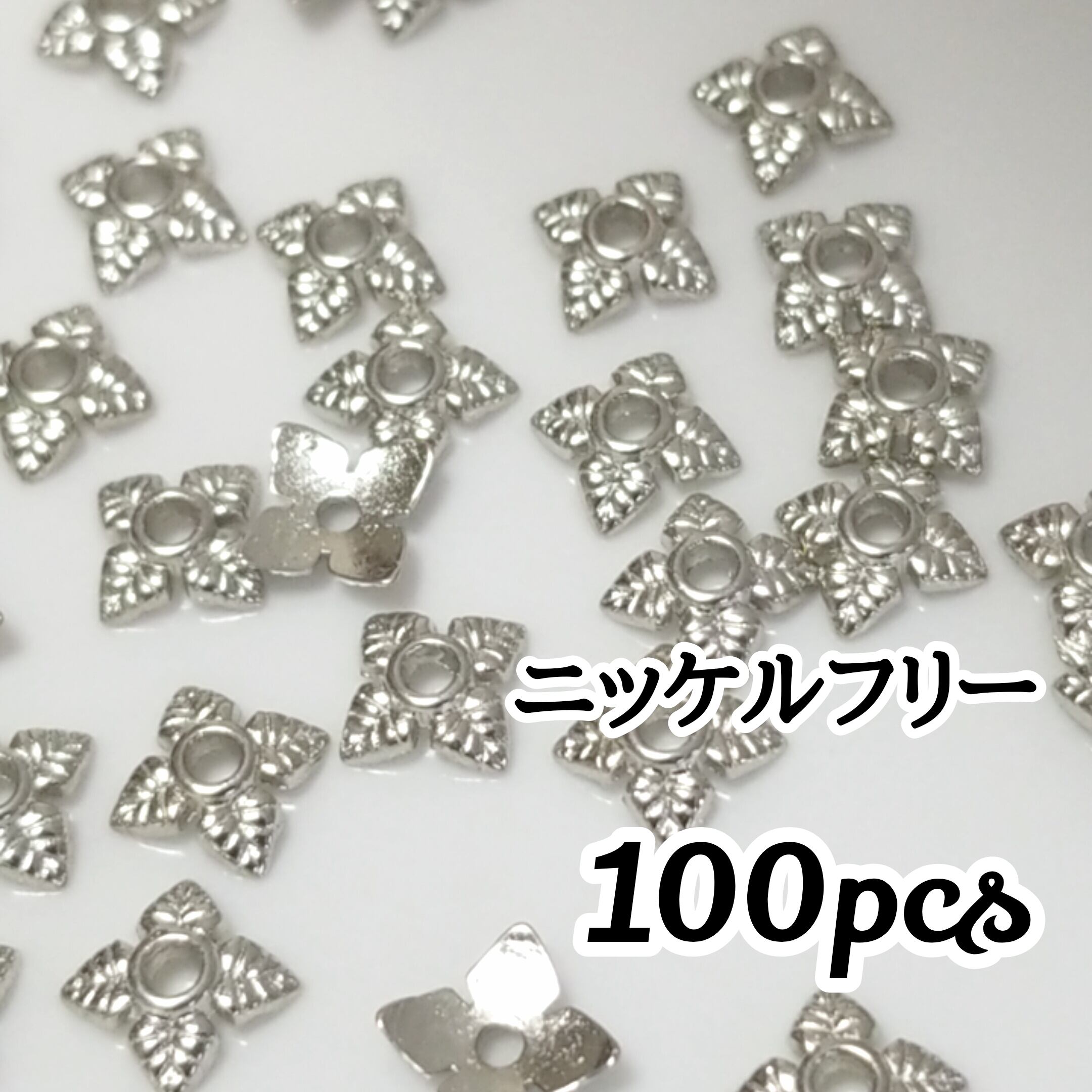 チベット風ビーズキャップ カラー:シルバー サイズ:6mm×6mm 仕様:ニッケルフリー、鉛フリー、カドミウムフリー 数量:100 ※計量のため多少の前後があります
