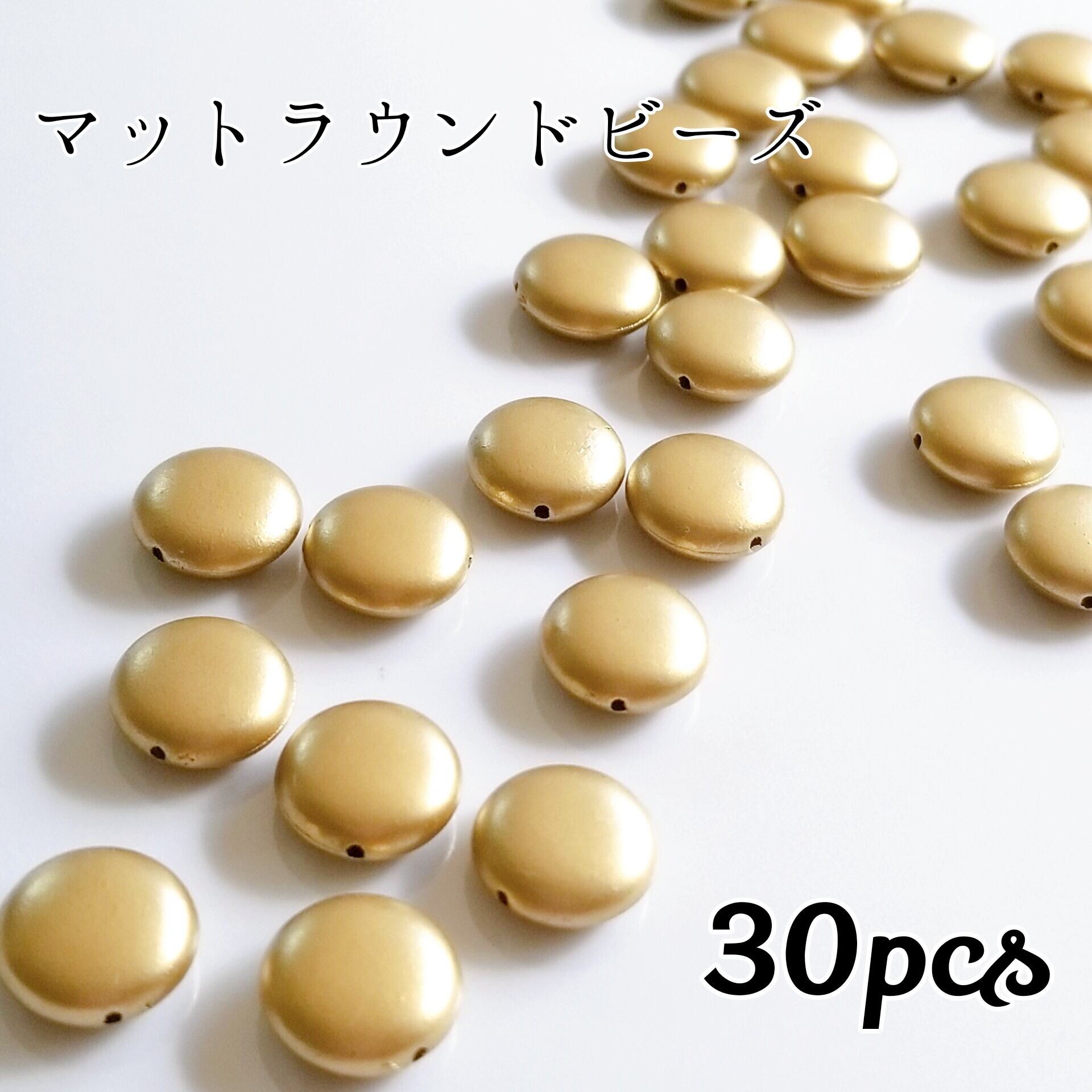 商品名:マットラウンドビーズ カラー:ゴールド(艶なし) サイズ:直径12mm×厚5mm、ホール1.5mm 数量:30個 仕様:アクリル 簡易包装、定形外での発送となります。