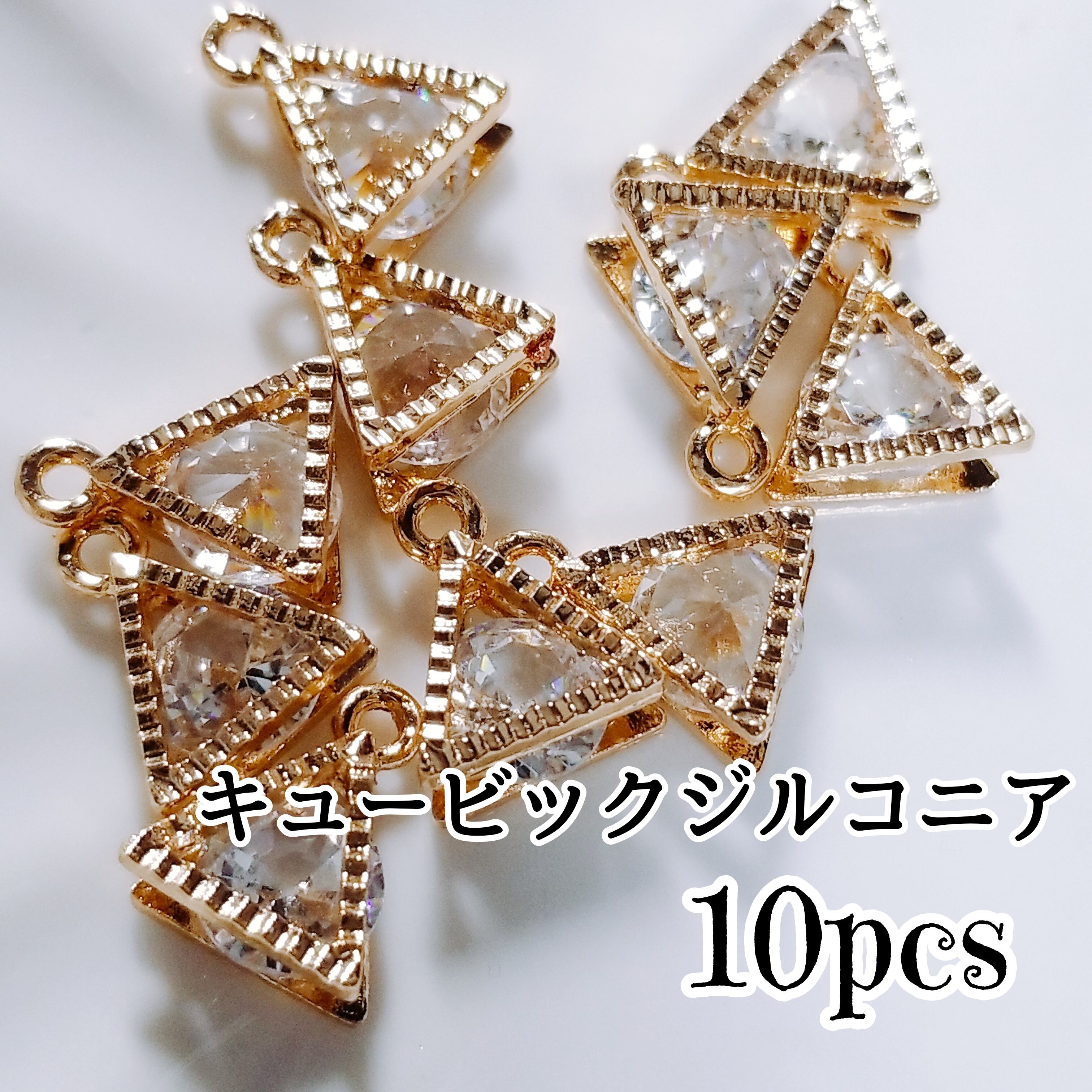 キュービックジルコニア三角チャーム カラー:ゴールド サイズ:11x9x5mm 数量:10個