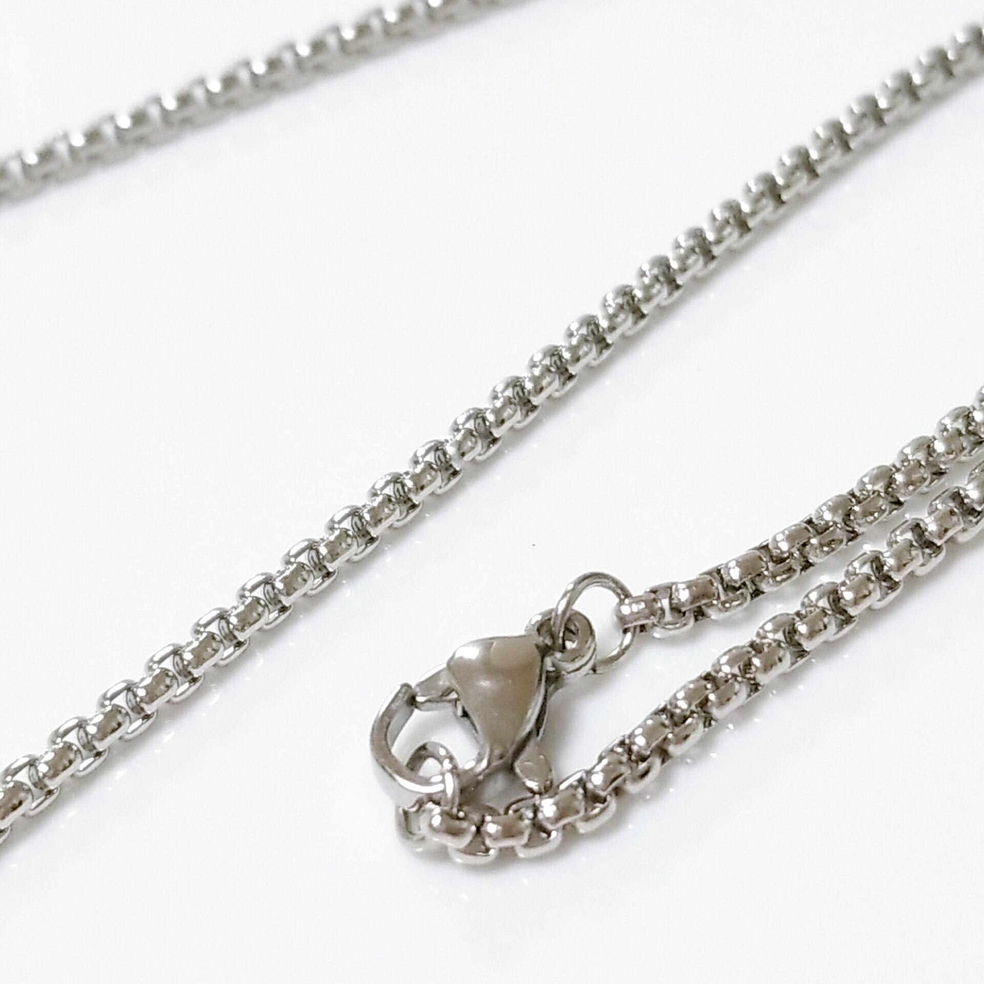 商品名:サージカルステンレス ベネチアンチェーンネックレス カラー:シルバー(ステンレス色) サイズ:長さ44cm、 幅2mm 仕様:サージカルステンレス 数量:1本