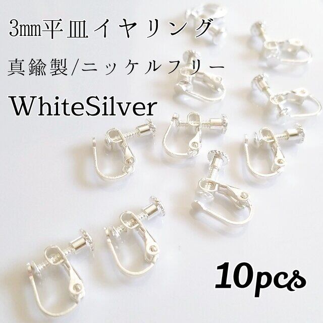 商品名:ねじ式 平皿イヤリング カラー:ホワイトシルバー サイズ: 縦約13mm×横約15mm、トレイ3mm 数量:10個 仕様:真鍮製/ニッケルフリー アレルギーを起こしやすいとされるニッケルを使用していない、真鍮製のイヤリングです。