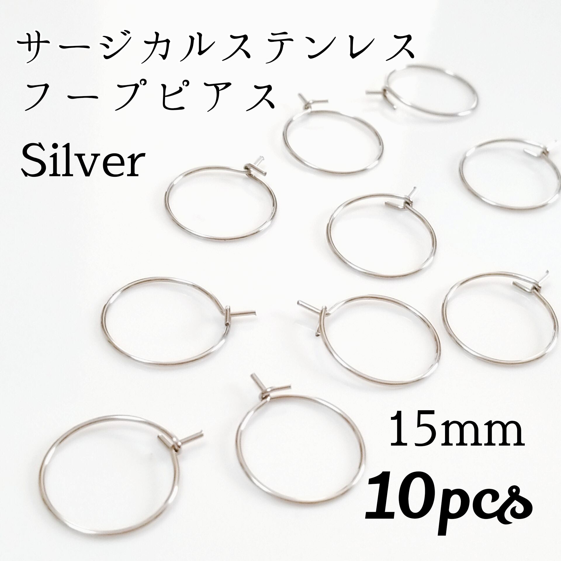 商品名:サージカルステンレス フープピアス カラー:シルバー サイズ:直径約15mm×太0.7mm 仕様:316サージカルステンレス 数量:10個入り ステンレスは錆や変色にとても強く、医療器具にも使用しているステンレス(304、316等)をサージカルステンレスと総称し、アレルギーを起こしにくいと言われています。 ┈┈┈┈┈┈ ❁ ❁ ❁ ┈┈┈┈┈┈┈┈ ✧パーツについて✧ 当ショップの商品は全て海外製品となります。検品はおこなっておひますが、日本製ほどの精密さはございません。 バリ、欠け、色ムラ、製造ロットによる色味具合、擦り傷、歪み等ある場合があります。ご理解の上ご購入くださいますようお願い致します。 ✧発送について✧ 速やかに発送を行うため、発送完了や購入後のご挨拶は省略させていただいております。ご了承ください。 安価でご提供するため、最安配送のミニレター/定形外郵便での発送となります。日祝の配達はお休みの為、週末や連休前のご購入は到着までお時間がかかります。 厚さ制限のため、プチプチ無し、小袋封入のうえ直に封筒梱包となります。紛失、破損等、輸送事故に対する保証は致しておりません。